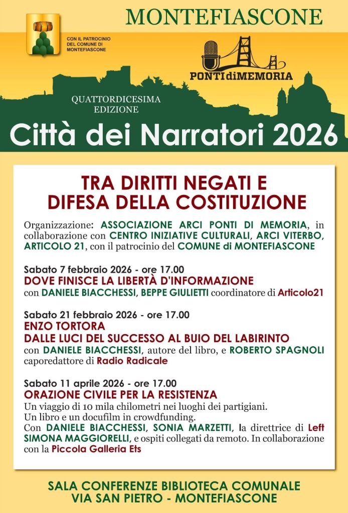 Il programma GLI ORGANIZZATORI GLI SPONSOR LA CITTA’ DEI NARRATORI 2026 INFOLINE biacchessi@gmail.com http://pontidimemoria.it Mi piace Caricamento...